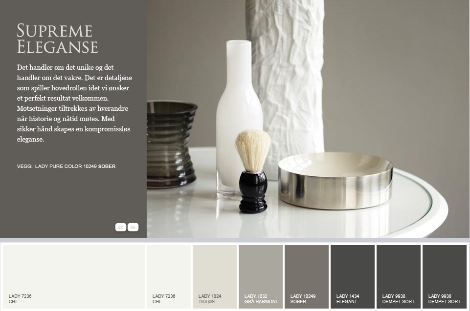 Tenk ALLTID på hvilke andre farger din nå nye, utvalgte farge skal passe sammen med;. Antikkgrå, 10Grå Harmoni, 18Valmuefrø og 14Elegant. Nordic Living; Urban Living; Continental Living; Natural Minerals; Soft Minerals; Elegant Minerals; Reflections of TIME; Reflections of LIGHT; Reflections of . I samarbeid med Jotuns fargeeksperter, anerkjente stylister, designere, etc.